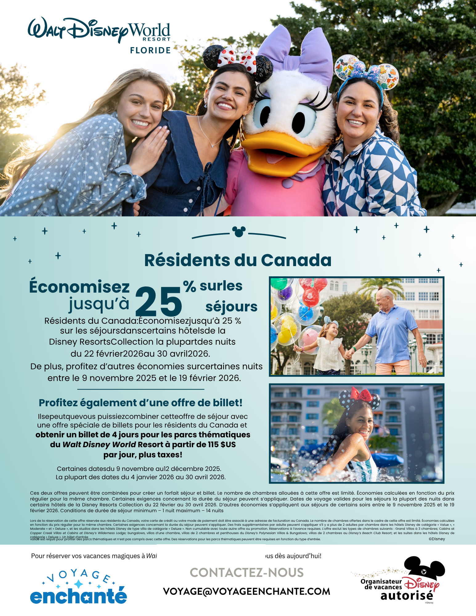 • Pour les séjours la plupart des nuits dans certains hôtels de la Disney Resorts Collection du 22 février au 30 avril 2026.